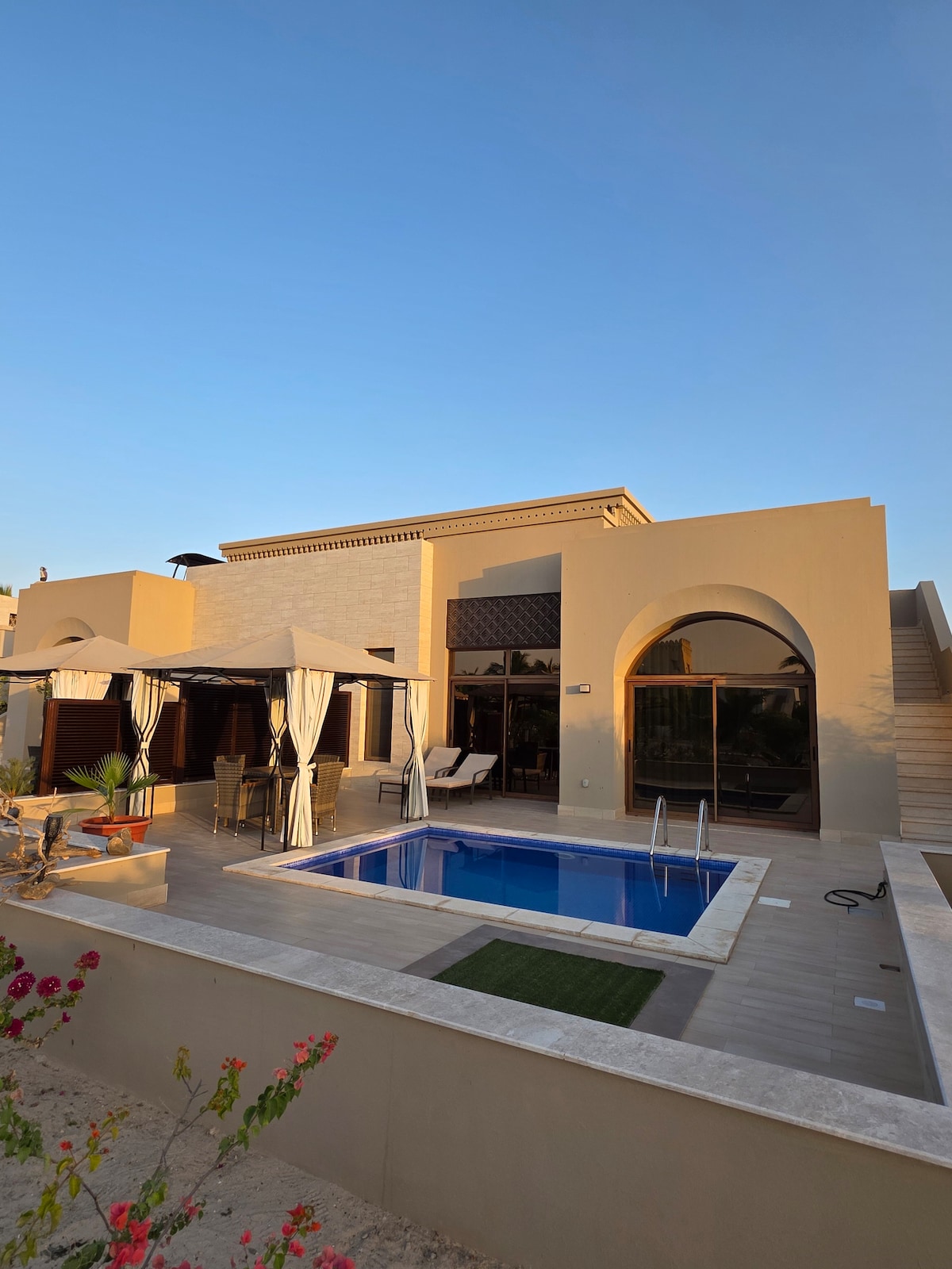 Zrelaksuj się w tym fantastycznym apartamencie na plaży w Hawanasalalah Resort. Ciesz się bezpośrednim dostępem do krystalicznie czystej wody Morza Arabskiego i zakończ dzień w prywatnym basenie. Ten nowoczesny, komfortowo urządzony apartament oferuje wszystko, czego potrzebujesz, aby spędzić relaksujące wakacje. Idealne dla par lub rodzin, które szukają wypoczynku na plaży. Warto również odkryć wspaniały region, oferujemy indywidualne wycieczki. Można zarezerwować sąsiednią willę.