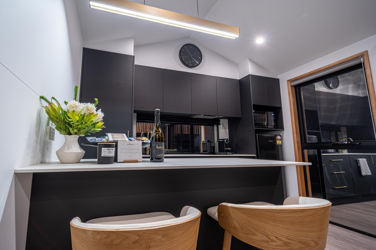 Zrelaksuj się w tym wyjątkowym, romantycznym miejscu w naszej nowoczesnej oazie przybrzeżnej w pięknej zatoce Binalong w Bay of Fires. Idealnie zaprojektowana dla par, nasza nowo wybudowana przystań oferuje zapierające dech w piersiach widoki na ocean, prywatną saunę, prysznic na świeżym powietrzu i wannę na świeżym powietrzu (zimna lub gorąca) z widokami, który warto żyć! Idealna do relaksu pod gwiazdami. Dostęp do obiektu prowadzą skalne schody z przodu. Zrelaksuj się przy ognisku, a fale będą Twoją ścieżką dźwiękową na oszałamiającym wschodnim wybrzeżu Tasmanii.