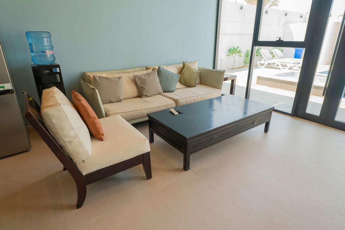 Witaj w prywatnym zakątku w Fudżajrze! Przestronna willa z 4 sypialniami idealna na rodzinne wypady. Prywatny basen, miejsce do grillowania, ładowanie pojazdów elektrycznych, wędkowanie, spacer po przystani, kajak i kilka minut od plaży Fujairah