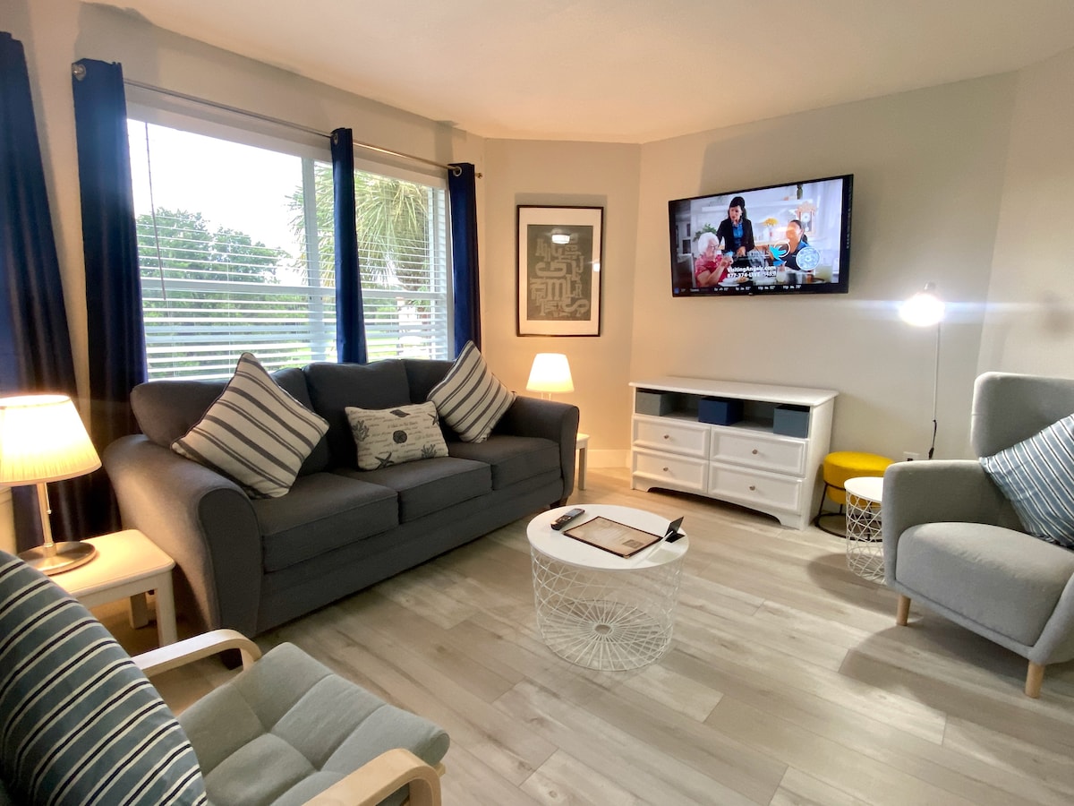 Zupełnie nowy, w pełni wyposażony apartament w stylu boho chic z 2 sypialniami i 2 łazienkami. Widok na basen dla maksymalnie 6 osób. Położony w przyjaznym rodzinie kurorcie Storey Lake Resort kilka minut od Disneya. Otwarty plan piętra łączy kuchnię, jadalnię, salon z 70-calowym telewizorem i pokój relaksacyjny. Apartament główny ma łóżko typu King i 65-calowy telewizor. Druga sypialnia ma łóżko typu Queen i Twin z telewizorem Smart TV. Blisko centrów handlowych i sklepów. BEZPŁATNY park wodny i udogodnienia: BASENY, STREFA PLUSKANIA DLA DZIECI, ZJEŻDŻALNIE WODNE, LENIWA RZEKA, SIŁOWNIA, TIKI-BAR, LODZIARNIA i wiele więcej.