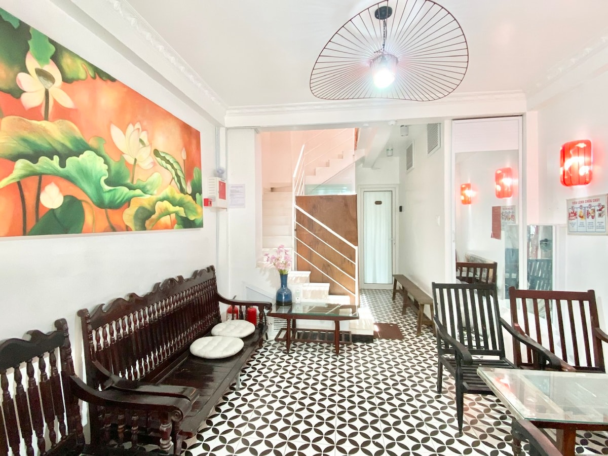 Nasze miejsce znajduje się w alejce w centrum miasta. To świetna lokalizacja w pobliżu wielu kawiarni, sklepu spożywczego, restauracji, targu, siłowni itp. - Dodaj: Nguyen Dinh Chieu st, District 3 (5 min do District 1) - Podwójne łóżko i miękki materac - Winda, klimatyzacja, telewizor i kabel, Wi-Fi, biurko, krzesło, szafa, sejf - Kuchnia: lodówka, kuchenka indukcyjna, czajnik, naczynie, miska, naczynie, garnek... - Prywatna łazienka: gorący prysznic i mnóstwo niezbędnych rzeczy - BEZPŁATNE sprzątanie i parking - Recepcjonistka pomoże gościom się zameldować