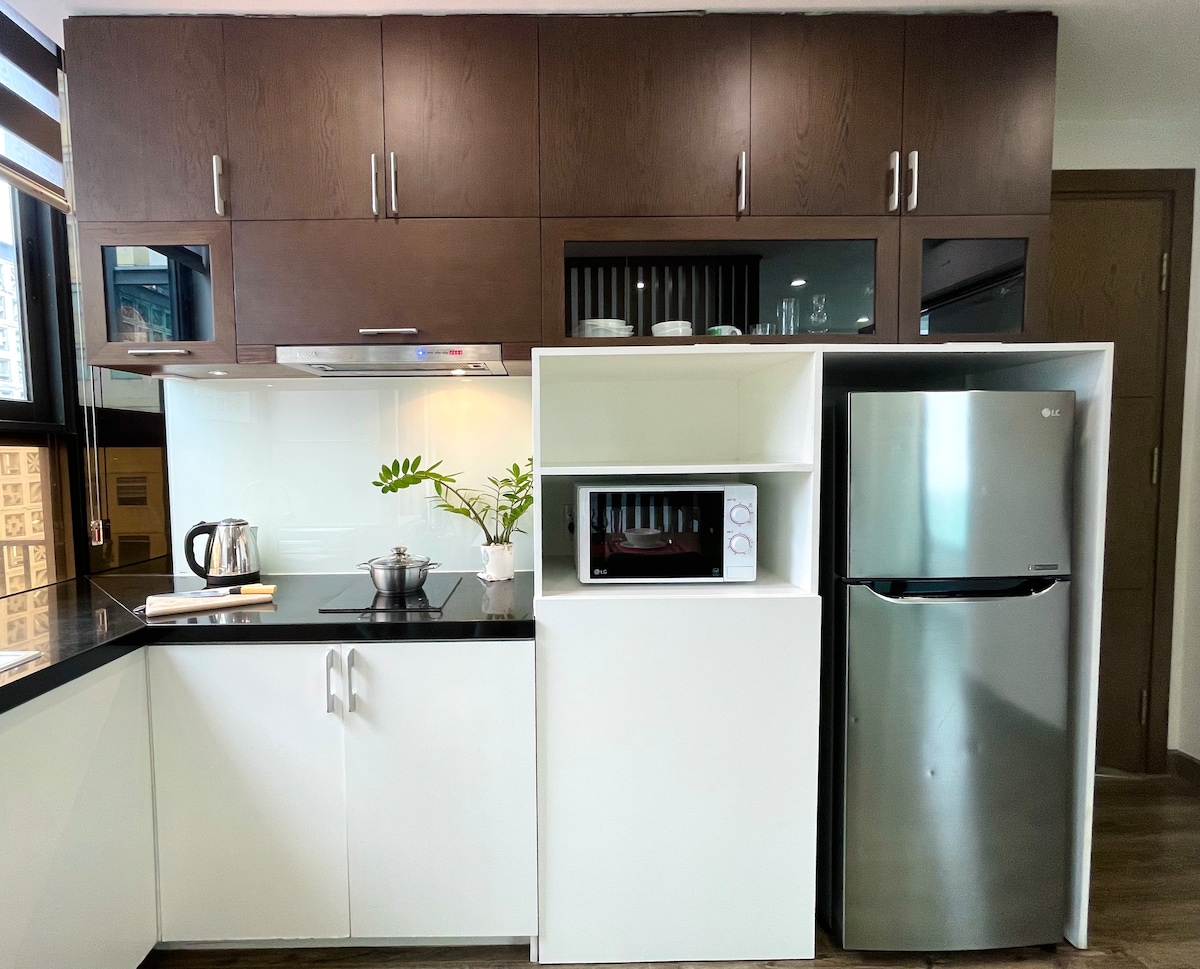 Apartament w rogu budynku (8 piętro). W nocy można obserwować kolorowy budynek Landmark 81, a w drugim oknie widok na miasto. Niech przyniesie Ci to więcej nowych pozytywnych doświadczeń. - Apartament ma wszystko, czego potrzebujesz, aby Twój pobyt był wygodny: wygodne łóżko, kuchenka, czajnik, lodówka, pralka z suszarką do ubrań, kuchenka mikrofalowa, klimatyzacja, gorąca woda, mleczko do kąpieli, szampon, ręczniki, przybory toaletowe.