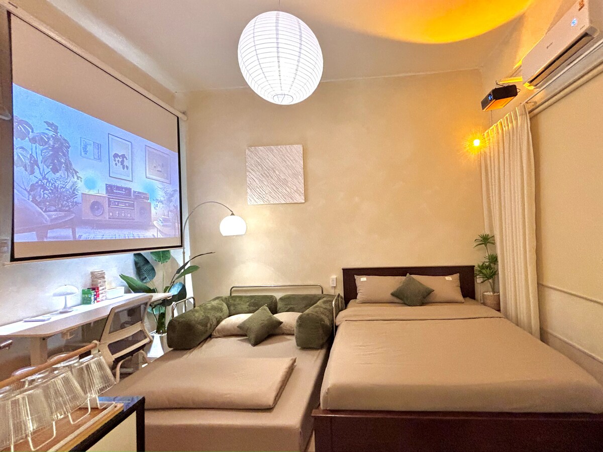 Wszystko jest proste w tym spokojnym miejscu i centralnie położone. W mieszkaniu znajduje się projektor ze 100-calowym ekranem, na którym możesz oglądać filmy na Netflixie. centralna lokalizacja jest dogodna do podróżowania, w pobliżu ulicy Bui Vien, w okolicy znajduje się wiele wietnamskich restauracji, takich jak: pho; makaron wołowy, makaron... i wiele sklepów spożywczych