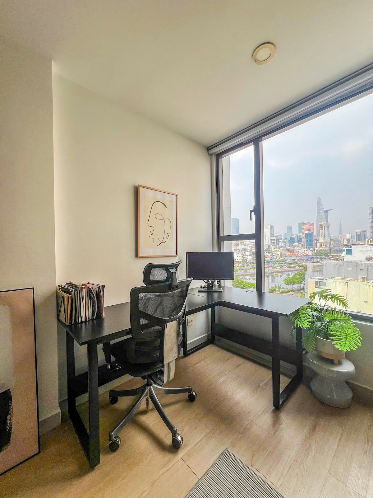 This is a relaxing place for your holiday. The apartment is central, new, lovely with a river view, and located 10 minutes walk from Ben Thanh market, Bui Vien walking street. There are 3 supermarkets: GS25, 7-11, Winmart, and 1 great coffee shop on the ground floor. Fully furnished apartment with nice bed, wardrobe, air-con, kitchen, refrigerator, working table, microwave…. Free access to the padding pool on level 7 included a children’s play area under cover, BBQ facilities, lazy chairs, etc