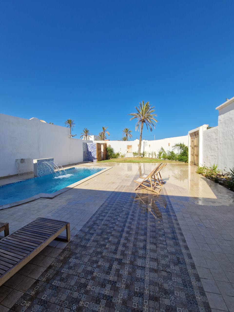 Witamy w Dar Nessrine & Yasmine, autentycznym pensjonacie w Tezdaine, Midoun (Dżerba), zaledwie 800 m od plaży. Ciesz się prywatnym basenem, spokojną atmosferą, komfortowym klimatyzowanym pokojem i przyjemną przestrzenią na świeżym powietrzu. Idealne dla rodzin lub grup szukających relaksu pod słońcem Dżerby. Bezpłatny parking, Wi-Fi, wyposażona kuchnia.