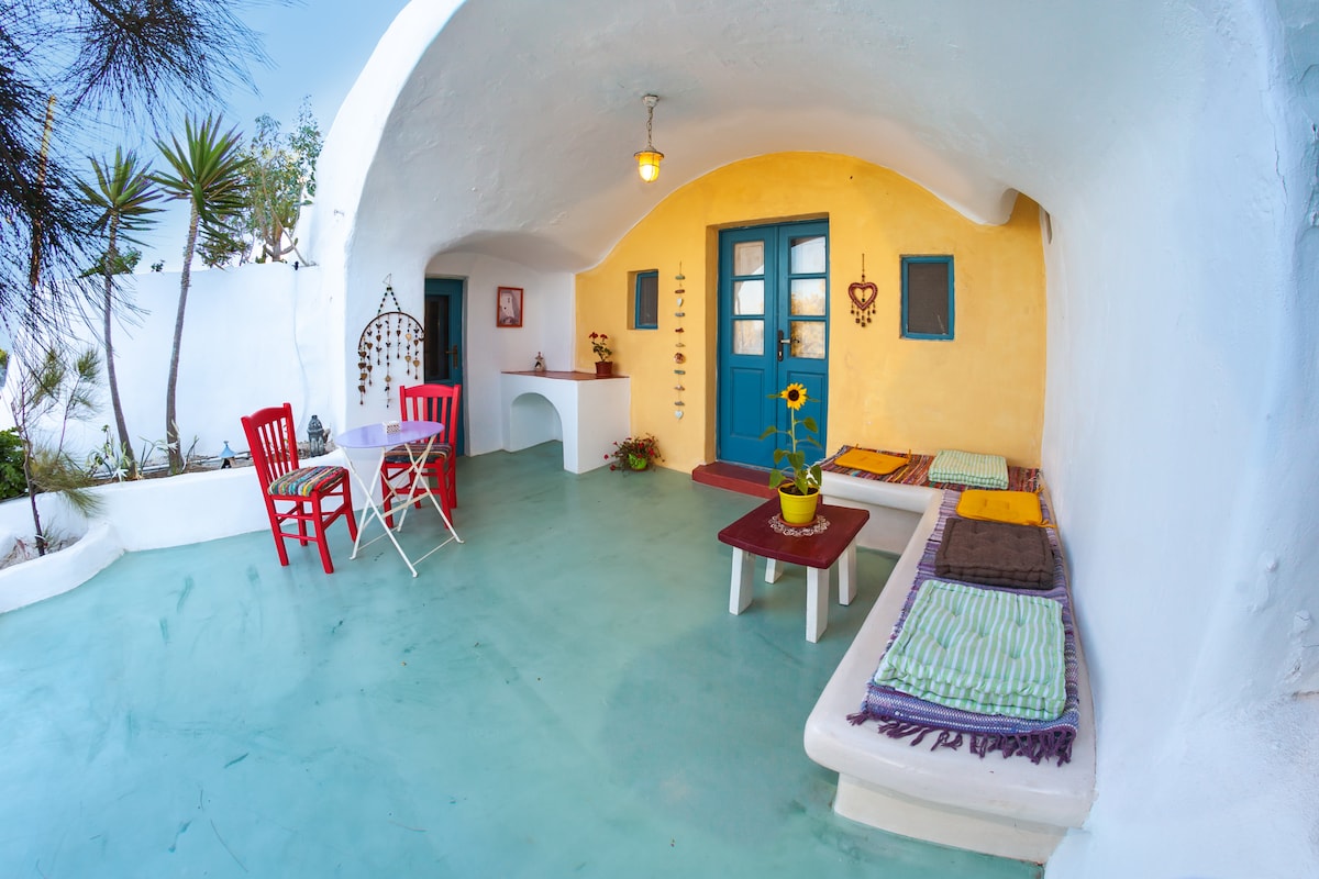 Antonio Caves are a typical example of Santorinian architecture. Constructed in 1901, it was initially used as cave house wine preparation cellar and a bakery built right into the volcanic rock. In 2020 it was renovated completely and converted into 3 autonomous suites sharing a common courtyard Situated in the traditional village of Megalochori in two minutes walking distance from the picturesque square of the village