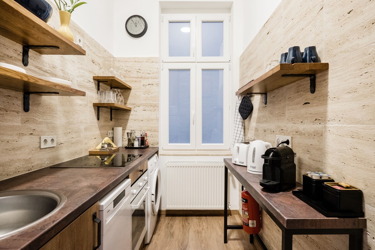 Zaprojektowany apartament został w pełni odnowiony w nowoczesnym stylu w pięknym domu z przełomu wieków. Apartament znajduje się na pierwszym piętrze, z windą i ma bardzo cichą i spokojną atmosferę. Znajduje się w jednej z najmodniejszych dzielnic Budapesztu z najlepszymi barami, pubami, restauracjami, muzeami, galeriami, butikami odzieżowymi, sklepami i historyczną architekturą na wyciągnięcie ręki. W klimatyzowanym apartamencie znajduje się w pełni wyposażona kuchnia i nowoczesna łazienka.