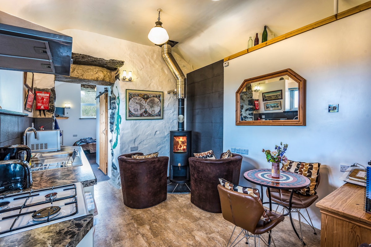 Ten niedawno odnowiony walijski domek z oryginalnymi elementami, nowoczesnymi urządzeniami i przytulnym palnikiem na drewno znajduje się nad wioską Garndolbenmaen, w pobliżu Porthmadog. To idealne, zaciszne, romantyczne miejsce dla dwojga położone wzdłuż cichej alei z przepięknym panoramicznym widokiem na zatokę Cardigan Bay i półwysep Llyn. Domek jest dobrze usytuowany, aby zwiedzić Snowdon (30 minut drogi), półwysep Llyn (tuż przed Tobą) oraz ciche zatoczki i plaże Anglesey (30 minut drogi).