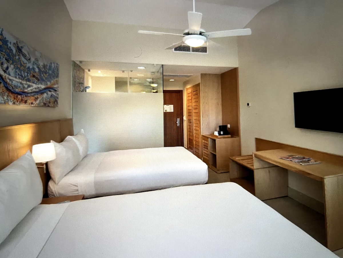 TA REZERWACJA DOTYCZY WYŁĄCZNIE ZAKWATEROWANIA. OPŁATA ALL INCLUSIVE MUSI ZOSTAĆ UISZCZONA W DNIU PRZYJAZDU. Ten nowoczesny apartament typu studio ma dwa duże łóżka w salonie, szklany prysznic i prywatny balkon! Kilka kroków od plaży i basenu! W obiekcie znajduje się również klimatyzacja, wentylator sufitowy i telewizja kablowa. This property is located in the stunning, gated beach side all-inclusive Lifestyle Holidays Vacation Club Resort in Puerto Plata, on the Caribbean Island of the Dominican Republic.