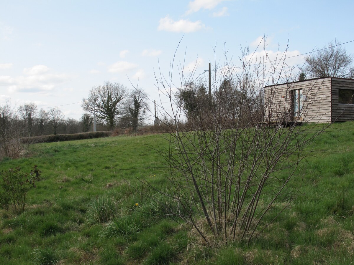 Come and unwind in this unique cabin located in the heart of the Normandy countryside. The 55m2 cabin comprises 2 bedrooms, 1 living room/kitchen, and a bathroom. Constructed from durable and recycled materials, this refuge has been designed to accommodate you for a peaceful stay in a green setting. However, please be aware that the site is not connected to water and electricity networks, so you will need to be mindful of your energy consumption during your stay.