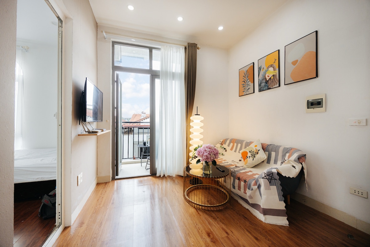 Studio z balkonem – widok na jezioro West Lake – 1 minuta do jeziora