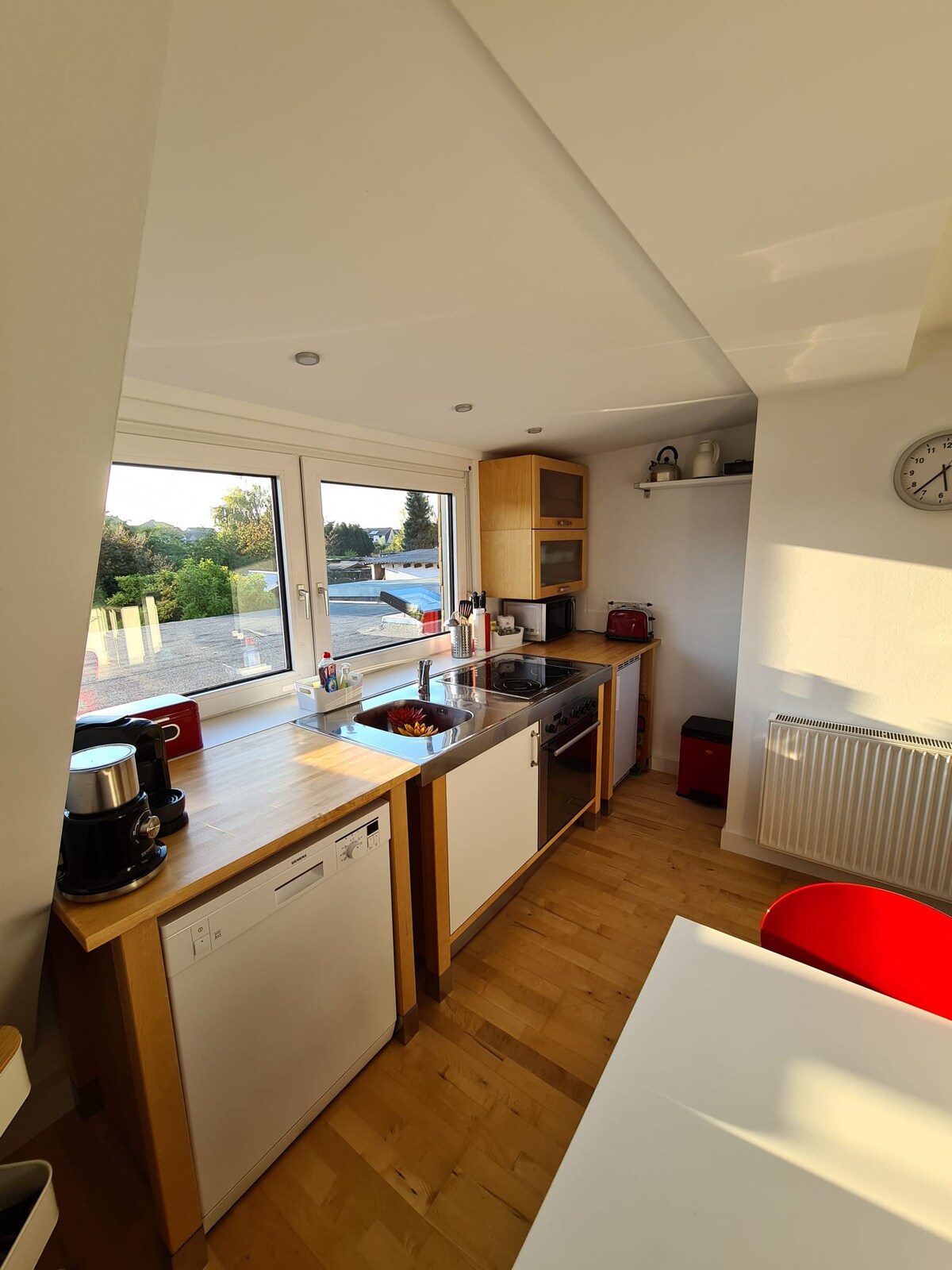 Świeżo odnowiony apartament na poddaszu o powierzchni 50 m² na przedmieściach Neuss z dobrym połączeniem komunikacyjnym. Autostrady A57 i A46 są dostępne w ciągu kilku minut. S-Bahn w kierunku Düsseldorfer Messe (ok. 50 min.), centrum miasta (ok. 20 min.) i lotnisko (ok. 40 min.), centrum Kolonii (ok. 40 min.), a także autobus w kierunku uniwersytetu w Düsseldorfie, w odległości spaceru. Połączenie autobusowe tuż za drzwiami (kierunek LukasKH). Całe mieszkanie zostało odnowione w 2023 roku, w tym nowe okna i łazienka.