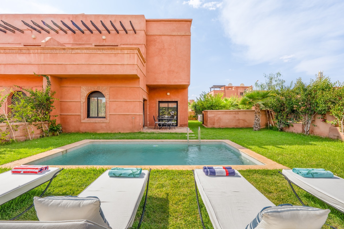 Zrelaksuj się w tym pięknym mieszkaniu z 1 sypialnią na parterze w luksusowym ośrodku Atlas Golf Resort, kilka minut od medyny w Marrakeszu. Ciesz się prywatnym ogrodem z tarasem, jadalnią na świeżym powietrzu i dostępem do basenów ośrodka – wszystko to w spokojnej i zielonej okolicy. ✔ Opcjonalne śniadanie ✔ Prywatny ogród i taras ✔ - Umeblowana kuchnia Dostęp do✔ basenu ✔ Wi-Fi, parking i całodobowa ochrona Zarezerwuj spokojny wypoczynek w Marrakeszu.