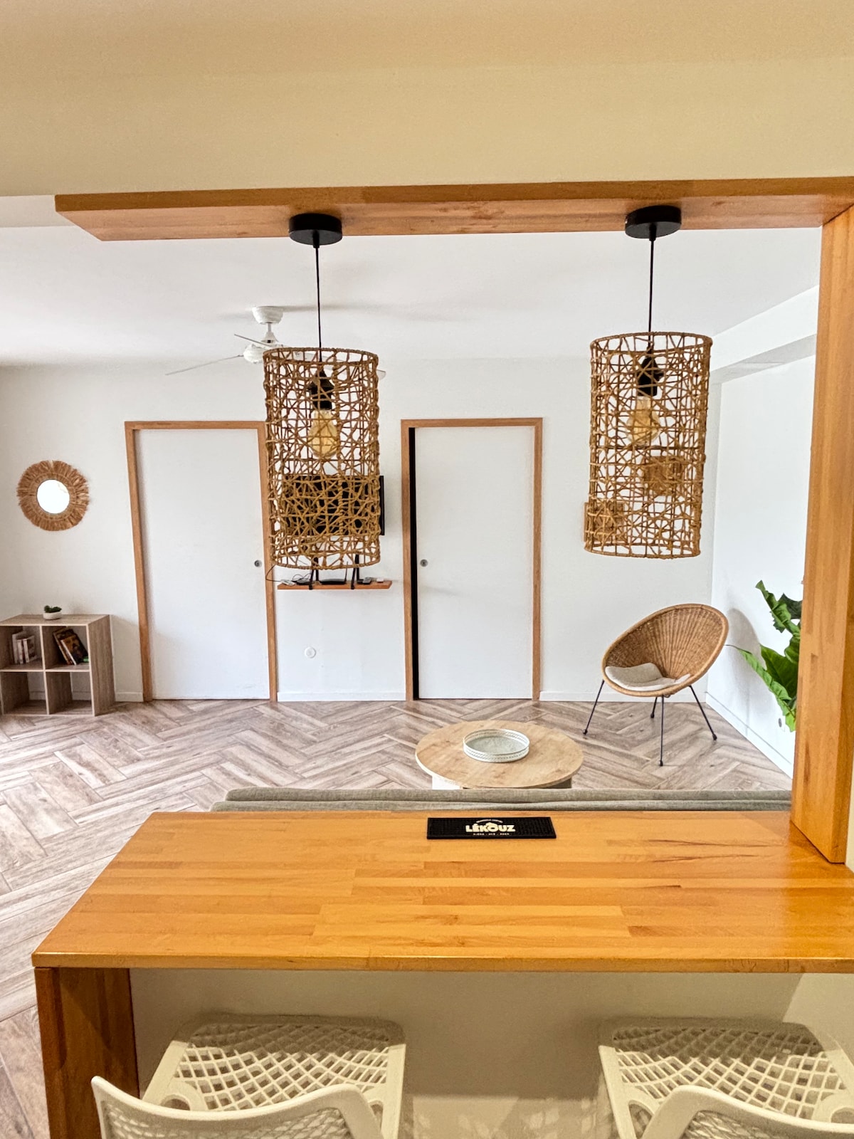 Le Bois Banane to domek w bohemskim stylu tropikalnym, łączący naturalne materiały, rattan i roślinne odcienie w miękkiej i jasnej atmosferze. Zaprojektowany jako elegancki i spokojny dom wakacyjny, zaprasza do odpoczynku i odprężenia się w ciepłym wnętrzu i na świeżym powietrzu. Położony w bezpośrednim sąsiedztwie plaży Bois Jolan, zapewnia łatwy dostęp do jednej z najpiękniejszych lagun w regionie, idealnej do pływania i spacerów nad wodą.