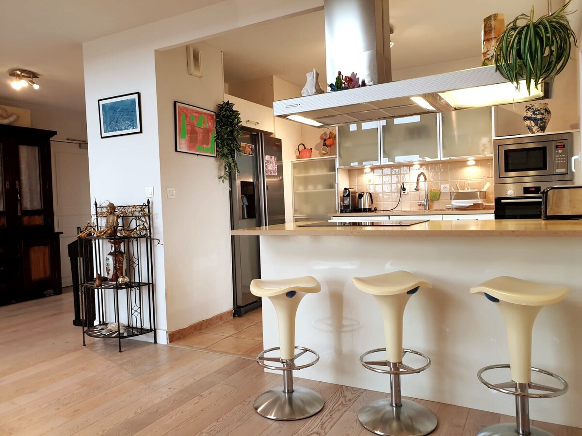 W historycznym sercu Caen, obok ratusza i Opactwa Mężów, całkowicie odnowiony apartament o powierzchni 65 m2, jasny parter z widokiem na dziedziniec i ogród, w pełni wyposażona otwarta kuchnia, salon z rozkładaną sofą, sypialnia z podwójnym łóżkiem, łazienka z prysznicem i wanną. Taras skierowany na południe z widokiem na zamknięty i słoneczny ogród, możliwość parkowania na dziedzińcu. Telewizor, Wi-Fi, żelazko i deska do prasowania, suszarka do włosów, ręczniki i pościel.