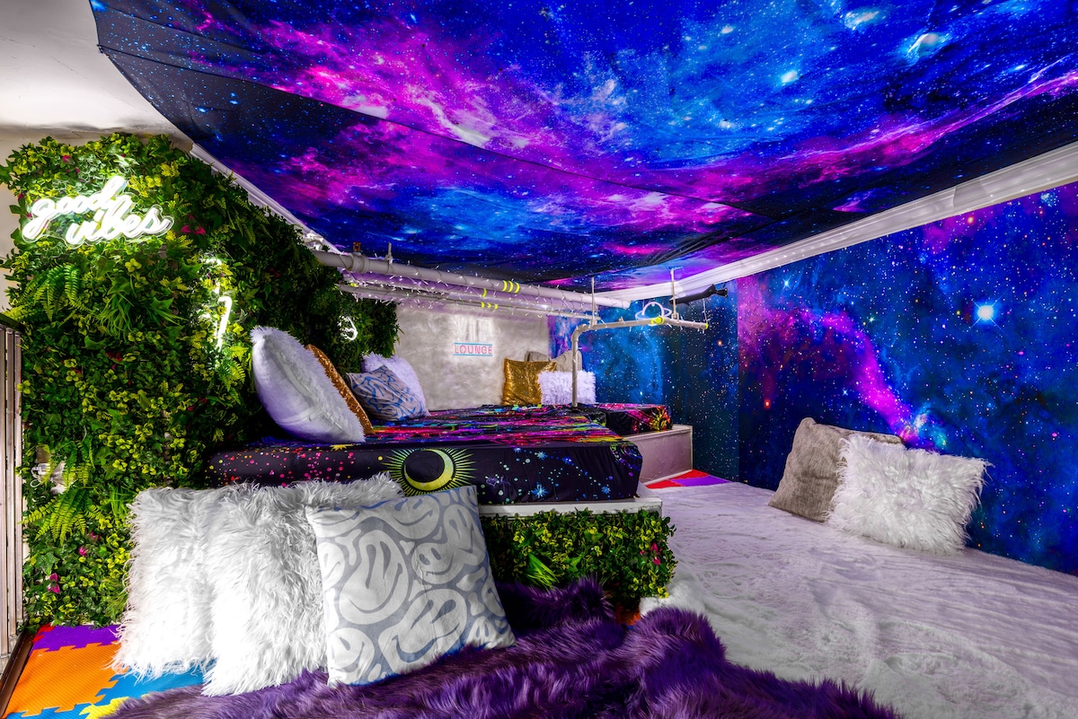 Step into this unique and stylish downtown Denver studio loft! With historic exposed brick, a palatial four-post king bed, and French doors leading to a balcony with views of the iconic Denver Clock Tower, this 650 sq. ft. space is full of charm. The upper-level VIP lounge, inspired by Meow Wolf, features black lights, furry walls, and galactic decor—perfect for relaxing or snapping pics. Recently renovated with a modern kitchen and appliances, it’s the ultimate downtown escape!