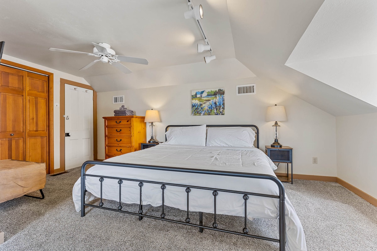 Historyczny dom wiktoriański w centrum Flagstaff. Drewniane podłogi, wysokie sufity, centralne ogrzewanie i klimatyzacja! Na piętrze znajduje się nowa sypialnia z łóżkiem typu king size, rozkładaną łóżką pojedynczym i łazienką z toaletą. Sypialnia na poziomie głównym ma nowe łóżko typu queen. W salonie jest rozkładane pojedyncze łóżko. Kuchnia jest dobrze zaopatrzona, a na podwórku znajduje się grill gazowy i prywatna, nowa wanna z hydromasażem. W odległości spaceru od centrum miasta. Ten dom został podzielony na 2 jednostki, ta jednostka jest większą połową dupleksu. Nie ma dostępu między jednostkami.