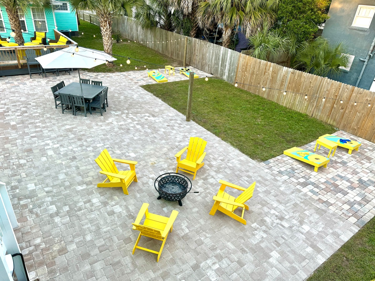 Ten dom to przestronny dom z 2 sypialniami, 2 pełnymi łazienkami, pełną pełną kuchnią, salonem z kominkiem i nie tylko. Posiada duże podwórko do relaksu rano i ładną werandę do relaksu wieczorem. W odległości spaceru znajduje się centrum Pensacola Civic Center i centrum miasta. W pobliżu znajdują się parki, kluby muzyczne, galerie sztuki, restauracje, plaża, centrum handlowe, targ rolny i wiele innych! Jest idealny dla par, samotnych poszukiwaczy przygód, osób podróżujących służbowo i rodzin na wakacjach.