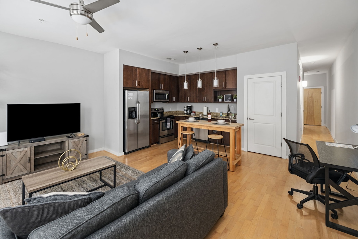 Ten oszałamiający apartament oferuje luksus i wygodę dla podróżujących pielęgniarek, profesjonalistów, osób podróżujących w pojedynkę lub par. W pełni wyposażona kuchnia wyposażona jest w frytkownicę beztłuszczową, garnek, bar kawowy i ekspres do kawy Bartesian, które zapewniają prawdziwe wrażenia z pobytu z dala od domu. Rozkoszuj się widokiem z tarasu na dachu, zrelaksuj się na dwóch podwórkach lub zanurz się w basenie. Kompleks obejmuje salę do jogi, centrum fitness, nowoczesną przestrzeń do pracy i prywatny parking podziemny. Idealne miejsce na niezapomniany pobyt!