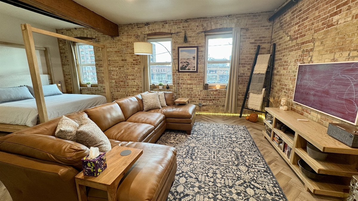 Witaj w idealnym miejscu w centrum miasta! Ten apartament typu studio o powierzchni 825 stóp kwadratowych w kultowych Warehouse Condominiums łączy industrialny urok z nowoczesnym komfortem. Wyposażona w odsłonięte ceglane ściany i stylowy wystrój, otwarta przestrzeń została zaprojektowana tak, aby Twój pobyt był zarówno relaksujący, jak i wygodny. ** Ten budynek magazynowy został zbudowany w 1910 roku i przekształcony w kondominia sprzed ponad 20 lat. Mieszkania nie są dźwiękoszczelne - często słyszysz sąsiadów, do Twojej wiadomości **