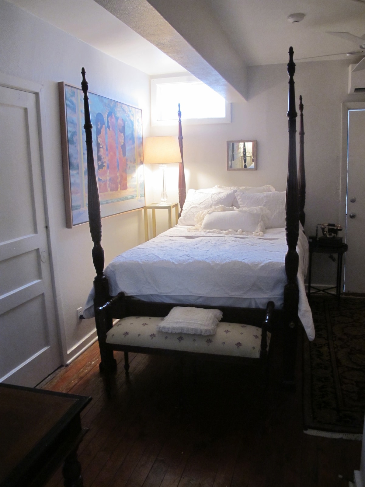 Idealne dla osób w ruchu lub planujących odpoczynek w łóżku i czytanie; to małe studio, ma urok, udogodnienia, pełnowymiarowe łóżko, ekspres do kawy/małą lodówkę/małą kuchenkę mikrofalową, szafę z wieszakami i małe biurko, wyłożoną kafelkami łazienkę, książki, drewniane podłogi, wentylator i klimatyzację/ogrzewanie bezprzewodowe. Małe i najlepsze dla jednej osoby, ale dwie, jeśli lubią się przytulać. Historyczna okolica z zakupami/jedzeniem/tańcem, teatrami, klubem komediowym, targowiskami, operą, bezpłatnym transportem lokalnym, przystanią Bayfront, barem tiki i nie tylko!