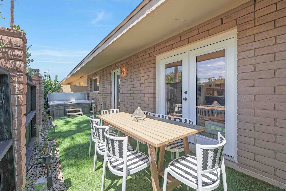 ➳ Walk to the heart of Old Town in 2 minutes (Seriously, as good as it gets) ➳ Sprawling backyard with heated pool and spacious hot tub ➳ Endless outdoor living space with fire pit, propane BBQ grill and dining area ➳ Two generous master suites and three bathrooms ➳ Collapsible wall in the living room for indoor-outdoor living Looking for something a little different? I’ve got 8 more top-rated Scottsdale homes, all 5 minutes or less from Old Town. Click my host profile to explore!