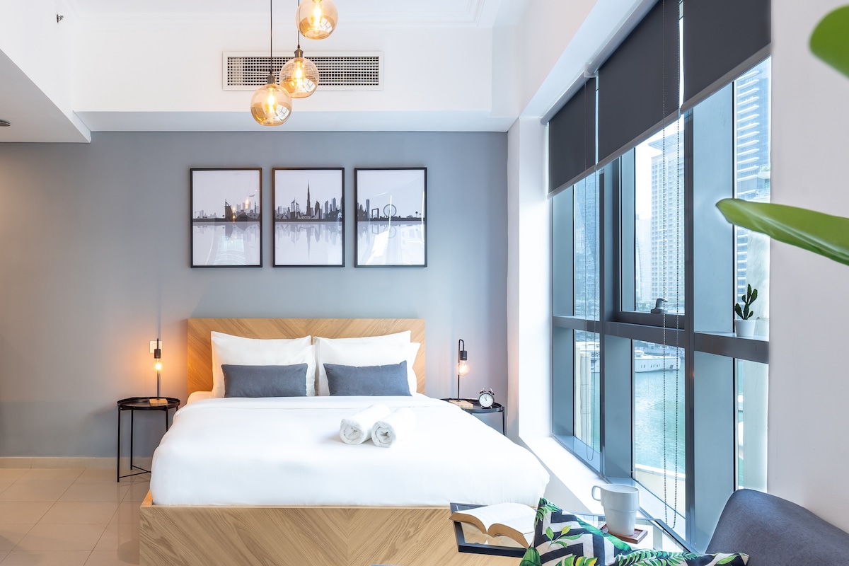 Benvenuti nel nuovissimo appartamento con 3 Posti letto (1 Letto King-Size e 1 Divano letto comodissimo) e 1 bagno, situato nel centro di Dubai Marina. A pochi passi da Jbr e dai mezzi di trasporto, troverai un rifugio rilassante a pochi passi dal mare. In Dubai Marina troverai i migliori ristoranti, negozi, intrattenimento, centri commerciali e attrazioni. L’accoglienza e la cura dei nostri dettagli ti lasceranno a bocca aperta e saremo lieti di ospitarvi e rendere unico il vostro soggiorno!