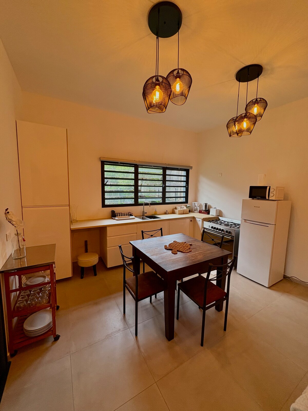 Położone na szczycie Place des Cocotiers, z widokiem na kiosk i morze, to urocze, komfortowe i jasne mieszkanie typu F2, całkowicie odnowione, oferuje wszelkie udogodnienia, których potrzebujesz podczas pobytu. Będziesz w samym sercu miasta, aby cieszyć się pobliskimi sklepami, targowiskiem lub muzeami, z widokiem na altankę muzyczną na Place des Cocotiers i morze. Dzielnica jest przyjemna i spokojna. Znajduje się 10 minut od Baie des Citrons lub Anse Vata