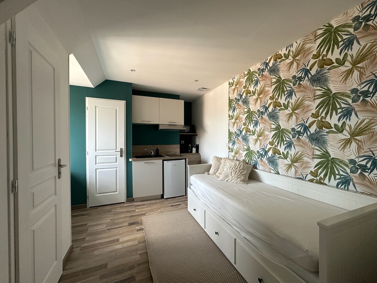Witamy w „La Lisière”, komfortowym studio położonym na końcu spokojnego zaułka w pobliżu serca Hortillonnages, a jednocześnie blisko centrum miasta i dworca kolejowego. Zrób sobie przerwę i odwiedź Amiens, miasto o ludzkiej skali, pełne niespodzianek, które spędza szczęśliwe dni w rytmie Sommy. Jego architektoniczne klejnoty, zieleń i przystanki dla smakoszy oczarują Cię na weekend, a nawet dłużej, jeśli tylko zechcesz!