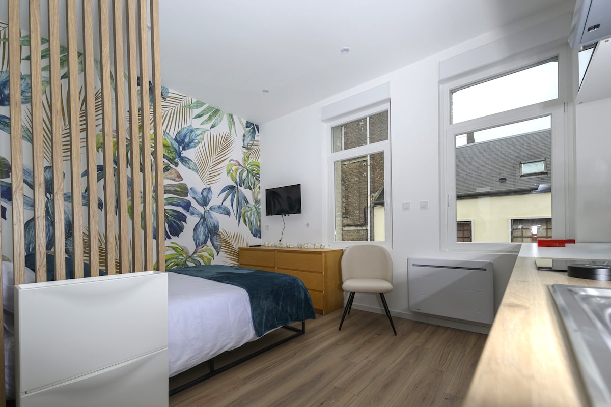 Zatrzymaj się w tym jasnym studio położonym w samym sercu dzielnicy Saint-Leu, na 4. piętrze bezpiecznej rezydencji, rzut kamieniem od centrum miasta i dworca kolejowego. Duże okno wychodzące na zatokę oferuje wspaniałe widoki na Quai Belu, jedno z najbardziej fotogenicznych miejsc w Amiens. Ta pracownia, która łączy spokój rezydencji z energią okolicy, jest idealna na relaksujący pobyt, podróż służbową lub weekendowe odkrywanie okolic.