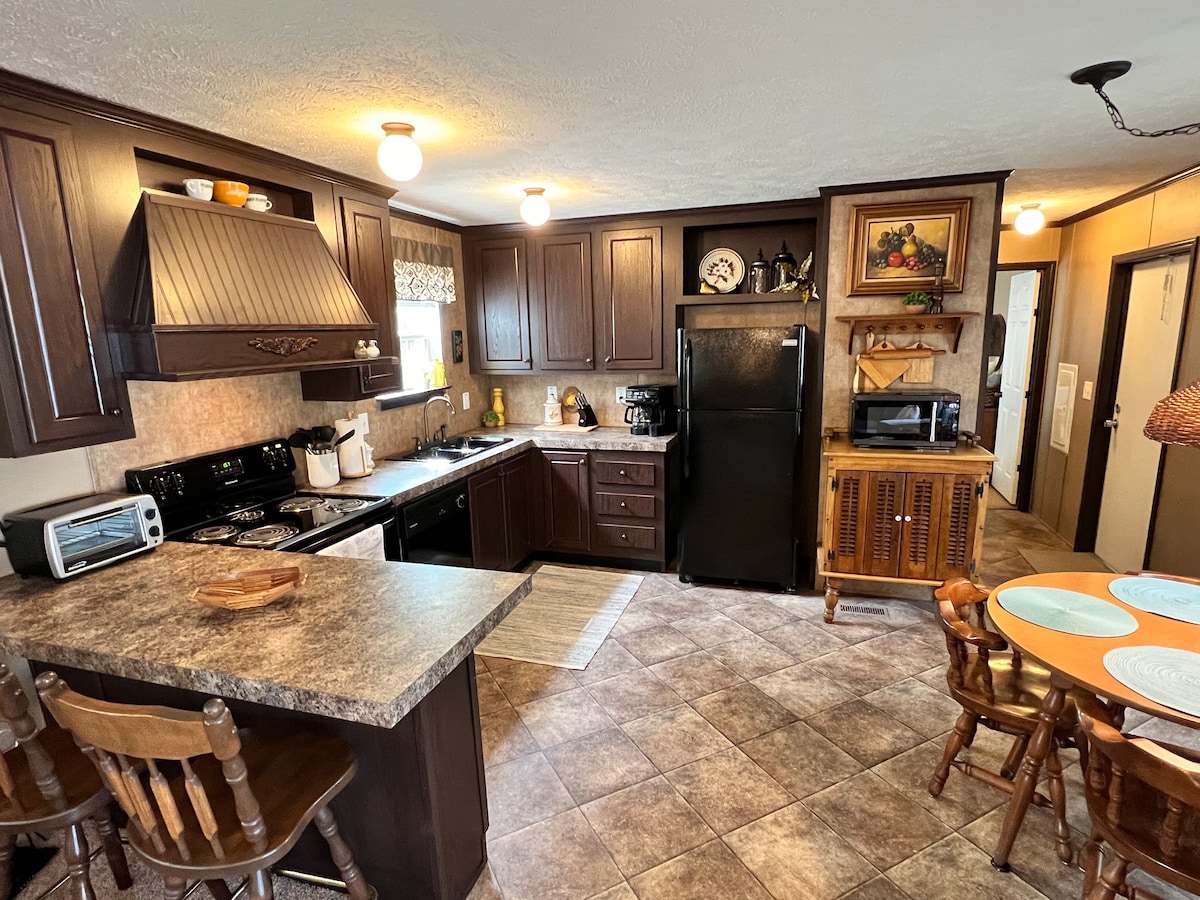 Świetny wypoczynek!!!!! Ten mały domek jest otwarty i przestronny oraz dobrze wyposażony na weekend lub dłuższy pobyt. Położony przy stawie z rybami, doskonałym do wędkowania. Ciesz się spokojnymi terenami turystycznymi, które doskonale nadają się do odpoczynku i powrotu do natury. Konie są w pobliżu, więc ciesz się oglądaniem ich zabawy. Wszystkie udogodnienia, jakie można sobie wyobrazić, pełnowymiarowa lodówka, piekarnik i kuchenka mikrofalowa oraz pralka i suszarka. Romantyczny kącik piknikowy z delikatnymi światłami i dużą prywatnością. Miejsce przyjazne dla zwierząt! Przyjdź i bądź naszym gościem!