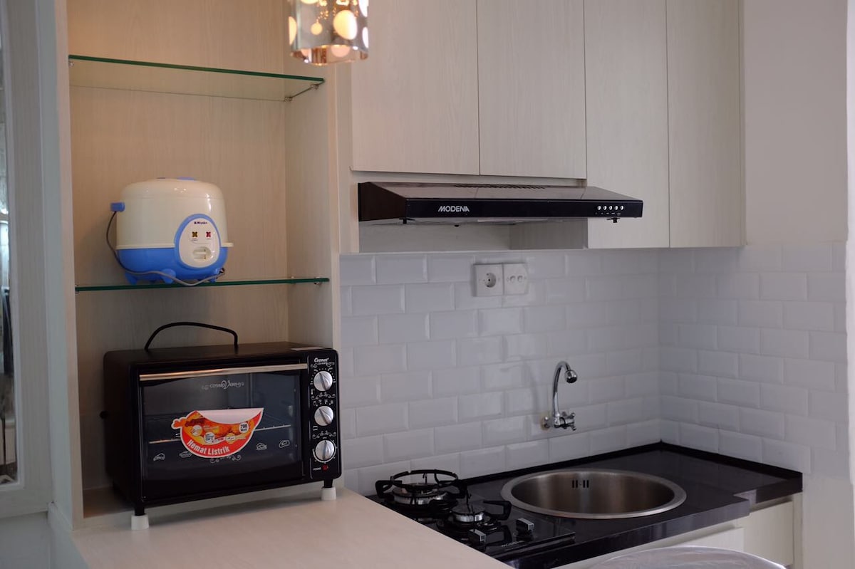 Full furnished apartment with full kitchen set (plate, glass, knife, etc), comfortable bed room with extra pillow, big cupboard & blanket, and we also provide fur carpet. Moreover, this apartment has its own swimming pool and also easy access to anywhere.
