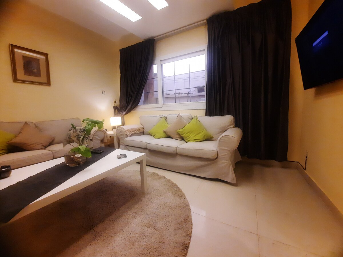 Oszałamiający, w pełni umeblowany apartament z jedną sypialnią do wynajęcia w Khartoum 2: * Generator gotowości. * W pełni wyposażona kuchnia (kuchenka mikrofalowa, kuchenka, czajnik, toster, ekspres do kawy itp.). * Pralka automatyczna. * Przestronna sypialnia i salon. * Smart TV. The apartment is at the second floor in a brand new building that near to KFC/PIZZA HUT, Ozone cafe and 4 minutes drive to Khartoum International Airport.