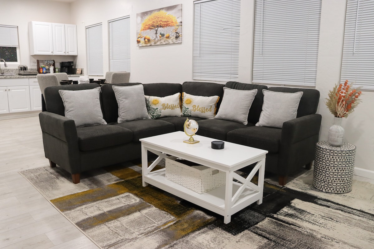 Wszyscy goście mogą cieszyć się przestronnymi i nietypowymi wnętrzami w tym miejscu. Trzy sypialnie i dwie łazienki, drewniane podłogi laminowane i płytki, w pełni zaopatrzona kuchnia, system oczyszczania wody, najszybszy internet, telewizor w każdym pokoju. Świetna okolica w SE Tulare, około mili od Tulare Market Place, dwie mile od Tulare Outlet, pięć mil do Ag Expo Center, a około 33 mil od Sequoia National Park, łatwy dostęp do autostrady 99.