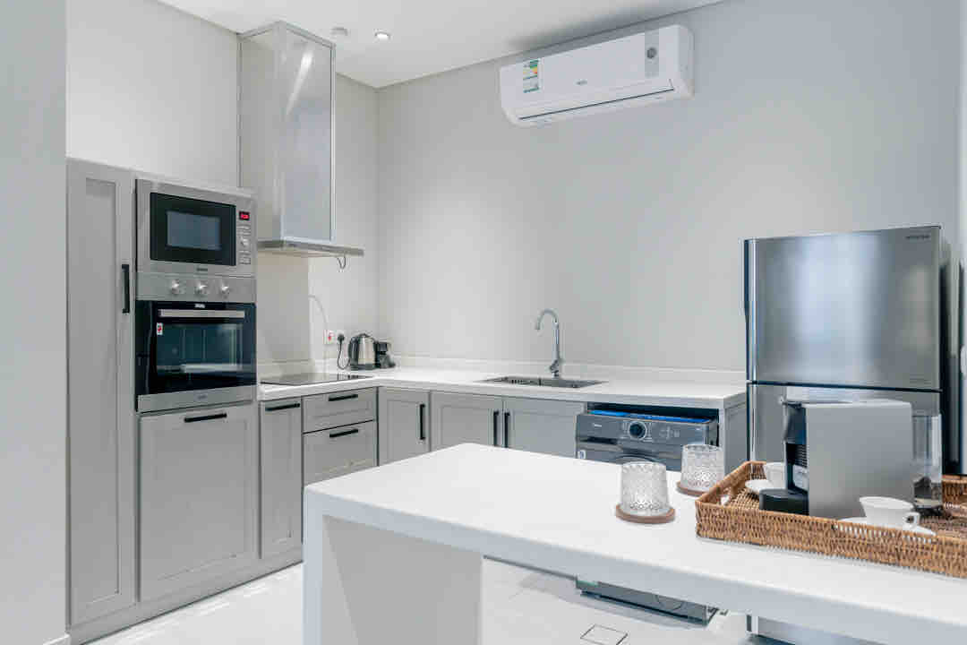 Nowoczesne mieszkanie z 1 sypialnią w Hittin, jednej z najlepszych lokalizacji w Rijadzie, kilka minut od Boulevard City i najlepszych kawiarni. Zaprojektowany z myślą o wygodzie i łatwości – z samodzielnym zameldowaniem i inteligentnym systemem. Oferuje przytulną część dzienną, wygodną sypialnię, 85-calowy telewizor Smart TV i elegancki kominek elektryczny, który tworzy relaksującą atmosferę. W pełni wyposażona kuchnia z piekarnikiem, kuchenką mikrofalową, kuchenką elektryczną, zmywarką i pralką. Czyste, stylowe i idealne dla par, osób podróżujących służbowo oraz na krótkie lub dłuższe pobyty.
