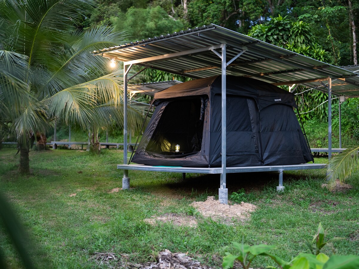 Relaksujący namiot otoczony przyrodą, chłodne powietrze, cisza, idealny dla par i podróżnych szukających prostoty, ale komfortu. Wewnątrz znajduje się wygodne łóżko i pełne udogodnienia z częścią dzienną na balkonie, aby cieszyć się atmosferą Ko Kood.
