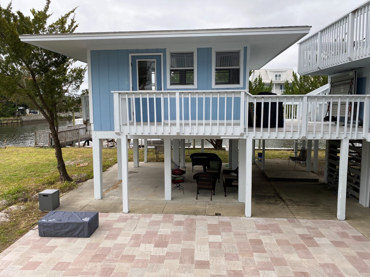 This NOT so tiny, tiny home is located across from the bay, has everything needed to enjoy your vacation. Completely remodeled in 2017. Shabby chic, beach decor, Q sized bed, 2 stuffed chairs & complete kitchen. Screened in porch, dining area, chairs. Relax with a beverage & enjoy the amazing view of the bay. Affordable small family (2 adults 1 small child) vacation or romantic getaway. Professionally cleaned after each guest stay. Bathroom is small with corner shower. Pet policy in listing