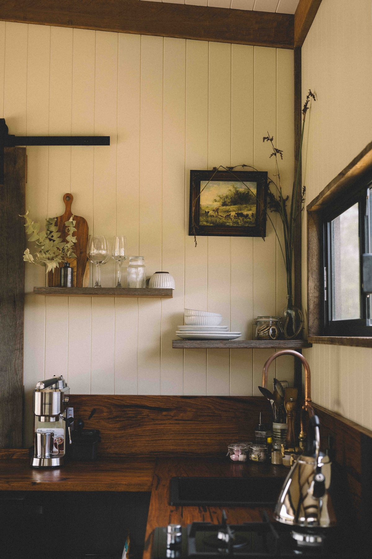 If a place was an exhale, this would be it. The space was created with slow & sustainable living in mind, giving you space to breathe & time to truly switch off. The Lookout sits in an open paddock, with 360 views of farmland. Take it all in from your bathtub or through huge windows that frame views stretching right over the wilds of Wildwood. Inside is a cocooning embrace; it’s the dreamiest sanctuary for two. Unfortunately our property is not set up to host newborns, infants or toddlers.