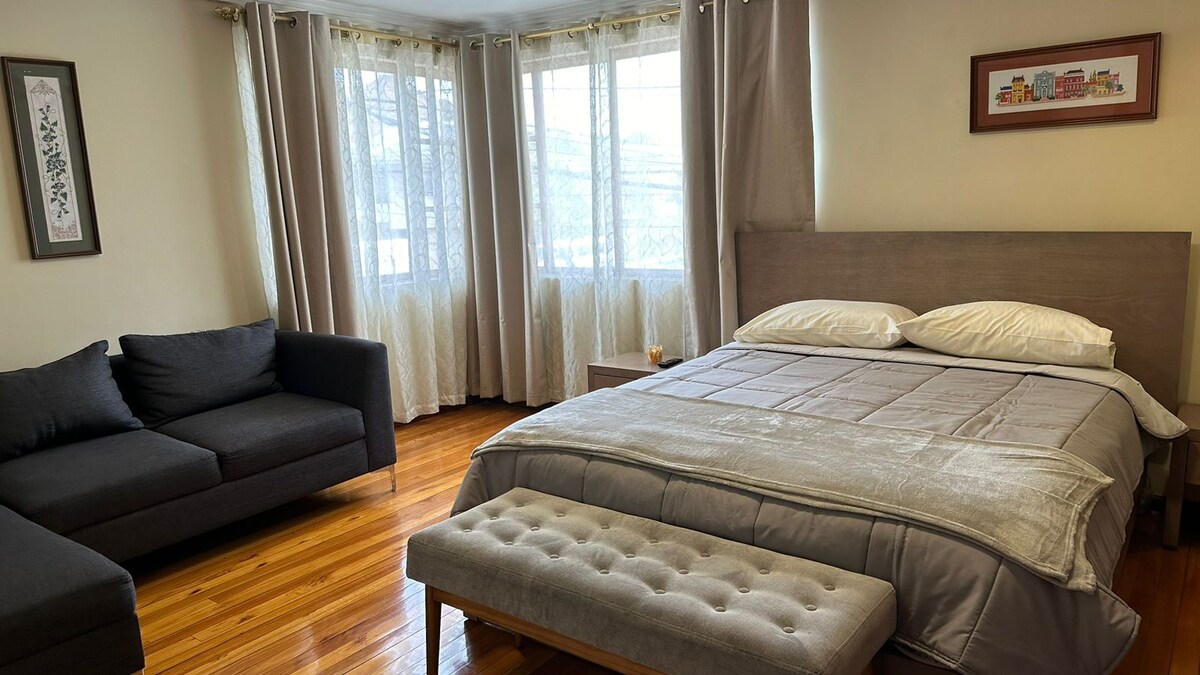 Suite by La Carolina Park, Pool & Parking Luxury suite facing La Carolina Park in one of Quito’s most exclusive areas. Enjoy stunning skyline views, modern décor, and a bright, elegant space designed for comfort. The building offers a heated pool, gym, sauna, and 24/7 security. Free parking included. Steps from top restaurants, shopping malls, and the metro. Ideal for guests seeking style, comfort, and a premium location.