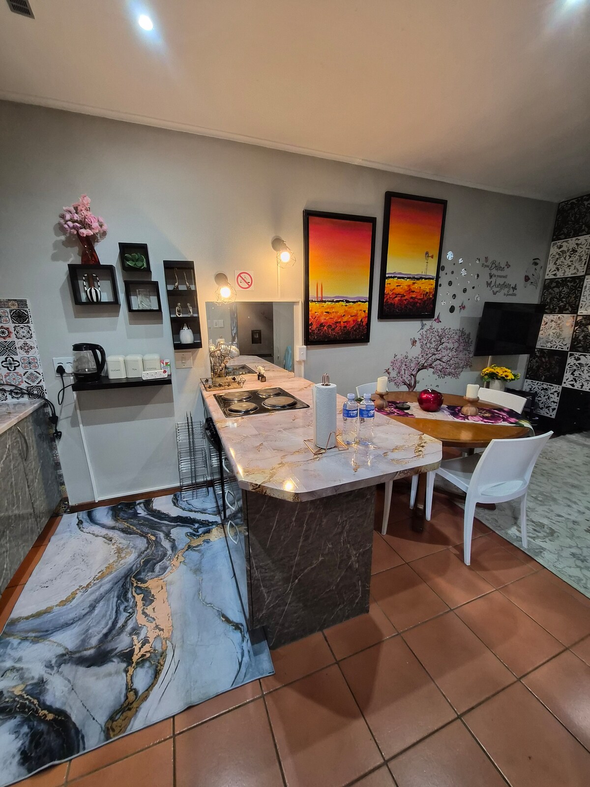 Zafunduj sobie odpoczynek i wyciszenie. Gdzie można uciec od zgiełku, a jednocześnie być dogodnie usytuowanym w pobliżu wszystkich udogodnień i dzielnic biznesowych. Ciesz się wieczorami z dźwiękiem świerszczy i żab rzecznych podczas spożywania pysznych sałatek, domowego obiadu lub najlepszej pizzy w mieście, po wcześniejszym uzgodnieniu. Lub po prostu przygotuj posiłek we w pełni wyposażonej kuchni, niezależnie od powodu, pracy, postoju lub relaksu, mamy wszystko, czego potrzebujesz.