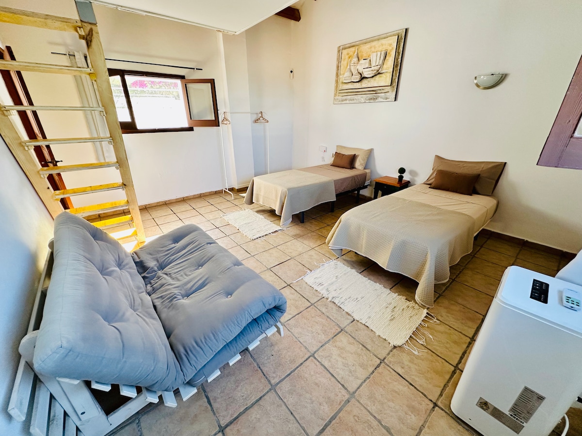 Piękny dom i bungalow na 2500 metrach ziemi, z ogrodem i basenem „ze słoną wodą, która jest zdrowsza dla skóry niż chlor”, całość ogrodzona, 200 metrów od plaży, mniej niż 5 minut spacerem! Aby cieszyć się całkowitą prywatnością. Idealne miejsce na fantastyczne wakacje!