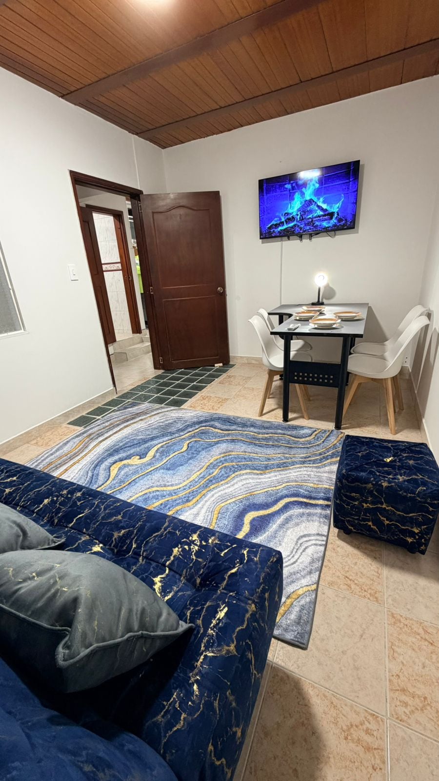Escape to Fagua, a unique colonial loft in Bogotá's historic La Candelaria. Perfect for up to 5 guests, this cozy retreat blends authentic character with modern comforts. Featuring a stunning wood-burning fireplace, high ceilings, and an indoor hammock, it's an unforgettable bohemian-style base for exploring the city's vibrant soul. Ideal for couples, families, or small groups seeking a truly artistic and historic Bogotá experience.