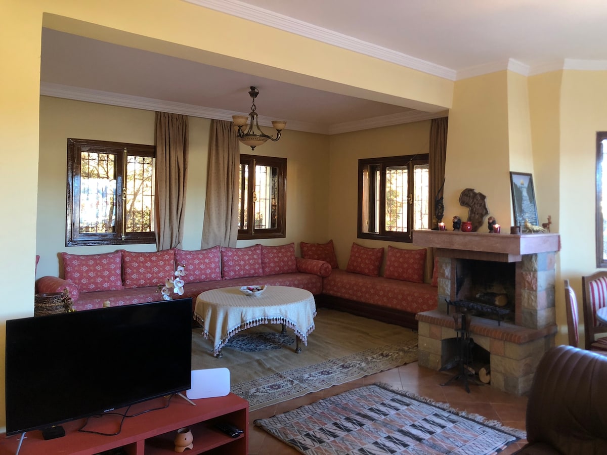 Ciesz się tym wspaniałym miejscem z rodziną, które oferuje dobre chwile w perspektywie. Bardzo ładne, przestronne, ciche i jasne mieszkanie o powierzchni 100 metrów kwadratowych z 3 sypialniami i dużym, przestronym marokańskim salonem, idealne dla rodzin. Niedaleko medyny, 10-15 minut jazdy samochodem, niedaleko autostrady. Uwaga: wynajem tylko dla małżeństw. Prawo marokańskie jest jasne, dziękujemy za zrozumienie.