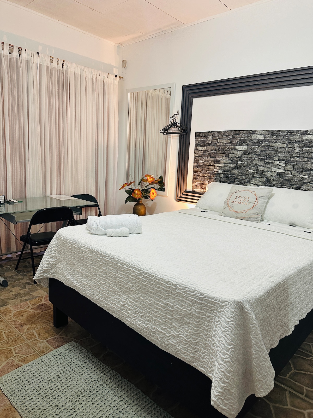 Ten przytulny i piękny pokój urzeknie Cię od pierwszej chwili! Zainspirowany naturą i zaprojektowany, aby zapewnić Ci komfortowy i relaksujący pobyt. Czas na basen wliczony w cenę! Urocza nieruchomość z otwartymi, kolorowymi i naturalnymi krajobrazami. Blisko lotniska, restauracji, centrów handlowych, aptek i szpitali. Idealnie położony w prywatnej społeczności Campisa, obok góry, gdzie można wybrać się na wędrówkę, obserwować dziką przyrodę lub po prostu podziwiać wspaniałą scenerię. Przygotuj się na niezapomniany☆ pobyt!