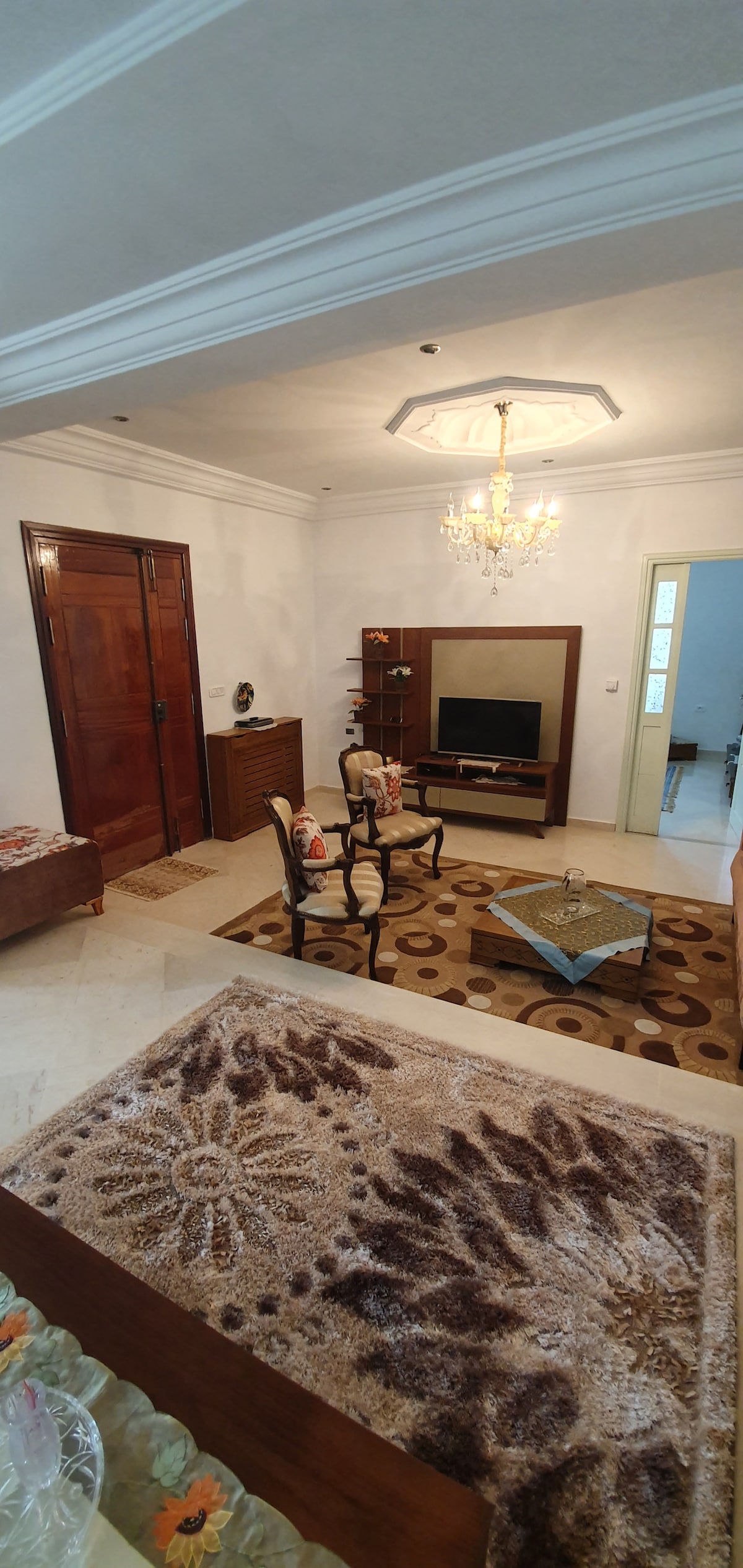 Przestronne i jasne mieszkanie dobrze położony w stolicy, w pobliżu wszystkich udogodnień i ambasad i organizacji pozarządowych (Mutuelleville, Menzah) składający się z 3 przestronne i dobrze wyposażone sypialnie z bardzo dużym salonem/jadalnią wyłożone zupełnie nowe drewniane podłogi z widokiem na przyjemny balkon z widokiem bez przeszkód. Odnowiona kuchnia jest w pełni wyposażona.