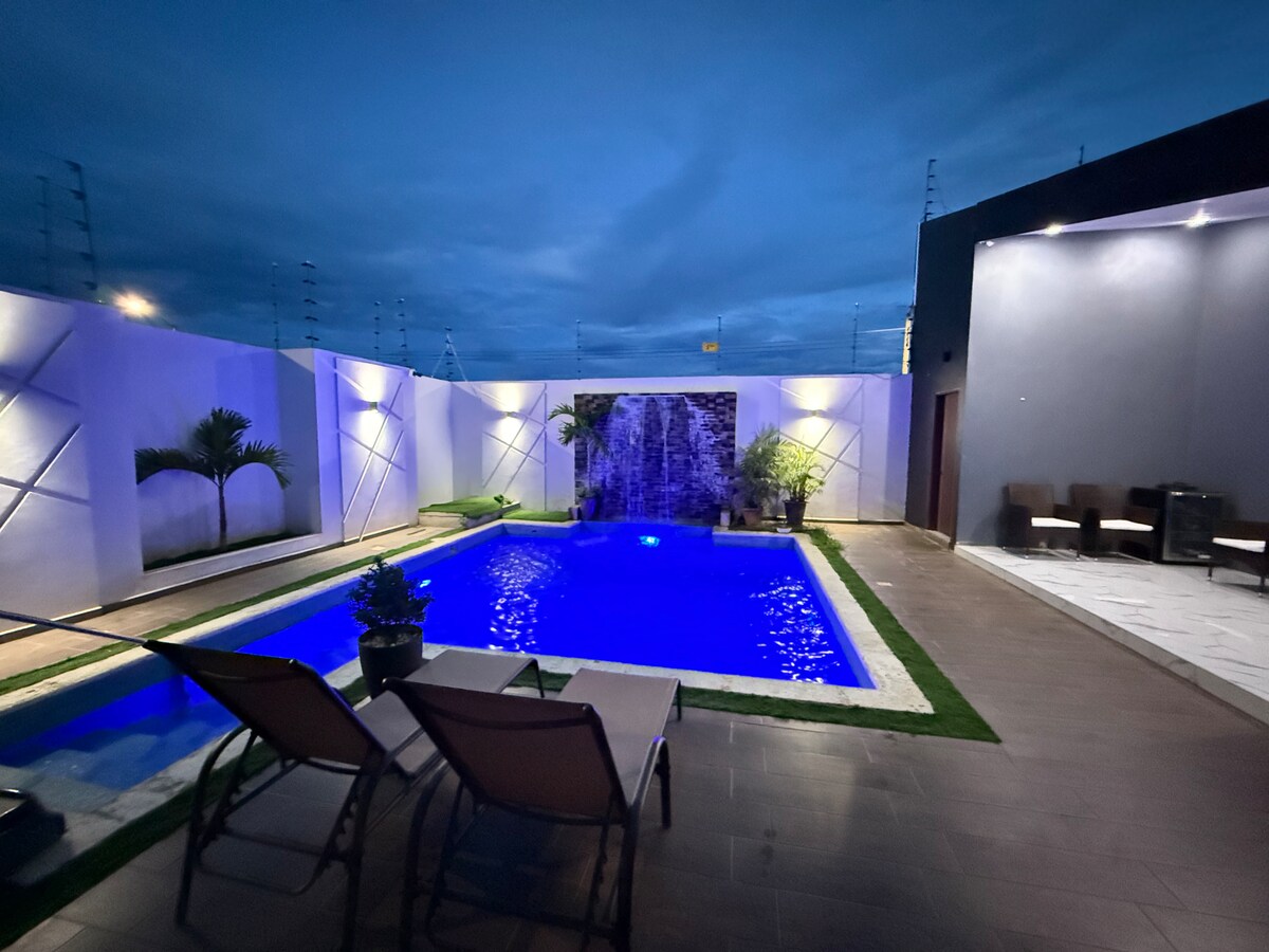 To stylowe miejsce na pobyt jest idealne dla grup, rodzin, współpracowników. Na miejscu jest basen i grill, klimatyzacja w całym domu, 2 sypialnie, w których mogą spać maksymalnie 4 osoby. Do wynajęcia ze wspólną łazienką i łazienką w części wspólnej. Ciche miejsce z dala od zgiełku miasta, ale jednocześnie blisko. Ochrona 24/7 Jeśli chcesz zorganizować imprezę, musisz o tym powiadomić i zgłosić gości. Imprezy z udziałem nieletnich są niedozwolone.