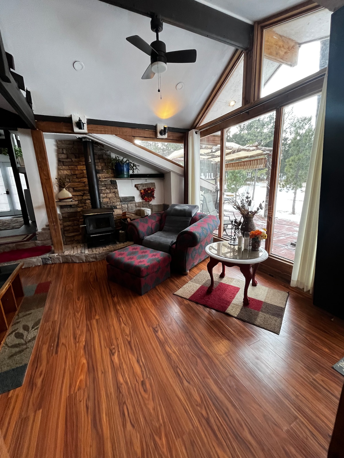 Przeżyj prawdziwy wypoczynek w Kolorado w tym niestandardowym, inspirowanym Skandynawią domku w kształcie litery A, położonym na Palmer Divide, zaledwie 15 minut od Colorado Springs i 30 minut od S Denver. Poczujesz się odosobniony wśród sosen z niesamowitymi widokami. Podczas picia kawy lub wina w jacuzzi albo gdy będziesz się otulać kocem, możesz zobaczyć przechodzące obok dzikie zwierzęta. Pierwsza butelka wina na nasz koszt! Szlaki turystyczne znajdują się kilka minut jazdy od chaty. Pamiętajcie, aby się zrelaksować i zebrać mnóstwo wspomnień. 😊