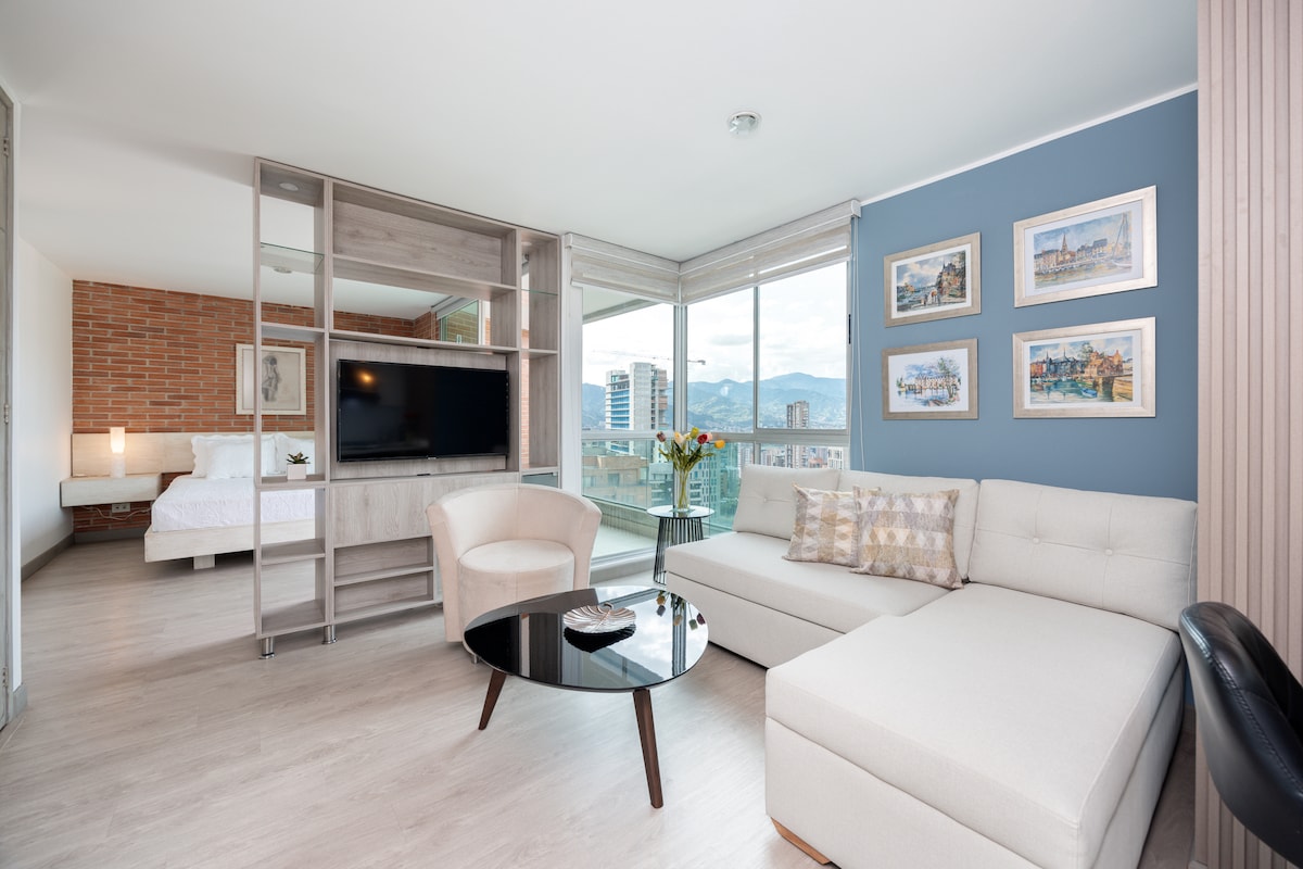 [C] Poblado Heights|Widok z 19. piętra|Klimatyzacja|Spa|Sauna