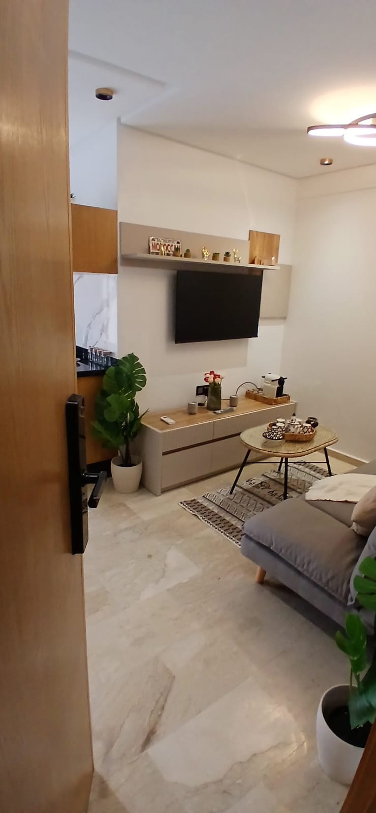 Experience luxury in this prestigious apartment situated within a newly constructed building. Nestled in the tranquil upper area of the lively Agdal neighborhood, this spacious apartment is perfect for your capital city stay. It comprises a generous bedroom with an ensuite bathroom, a welcoming living area with an additional guest bathroom, outdoor space, and a highly functional kitchen. Furthermore, you'll find all the essential amenities for a nice stay, wifi, dishwasher, washing machine etc