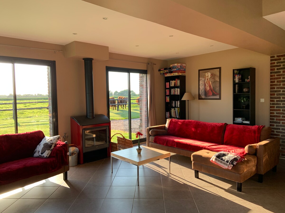 Położone 25 minut od centrum Rouen, na wzgórzu na skraju lasu, to miejsce dla 2 osób z eleganckim wystrojem zapewni Ci niezbędny spokój, abyś mógł/mogła naładować baterie. Dom w stylu architektonicznym z drewnianą konstrukcją jest całkowicie niezależny, nie ma sąsiadów i oferuje wspaniały widok na wioskę położoną w dolinie. Z prywatnego tarasu i ogrodu można podziwiać kozy i owce oraz zachód słońca w tej sielankowej scenerii.